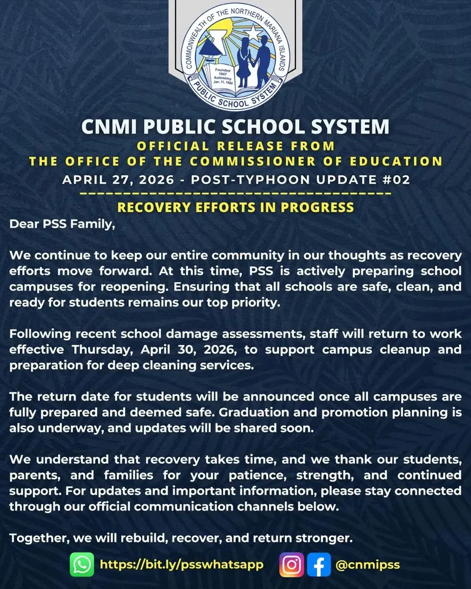 슈퍼 태풍 신라쿠가 휩쓸고 간 지역의 복구 작업이 긴박하게 진행되고 있습니다. 합동정보센터(JIC)는 티니안, 로타, 그리고 주요 피해 지역인 사이판 전역에서 전력과 수도 등 핵심 기반 시설을 복구하기 위해 24시간 대응 체제를 가동 중입니다. 전력 복구 상황은 지역별로 차이가 큽니다. 사이판의 경우 1만 5천여 가구 이상의 전력이 여전히 끊긴 상태이며, 약 … 슈퍼 태풍 신라쿠 피해 복구 현황: 전력 및 수도 정상화 속도Read more